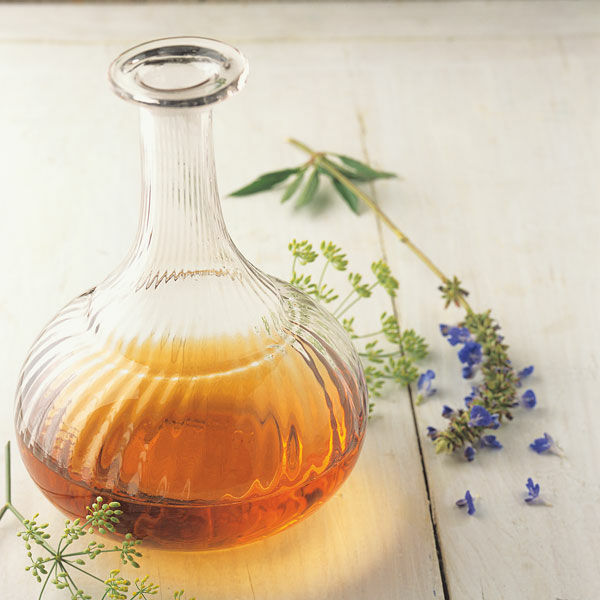 - Gib die Kräuter in ein Glasgefäß und füge den Korn hinzu. Verschließe das Gefäß und lass die Mischung für ca. 3 Wochen ziehen.